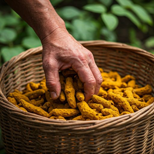 Pure turmeric roots (fingers) with bold color and earthy notes, suitable for grinding, cooking, and traditional preparations.
